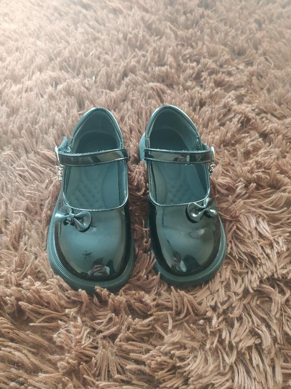 Гарні лакові туфельки. Фіксуються на липучці. На одному з бантиків немає полосочки. Практично не видно.