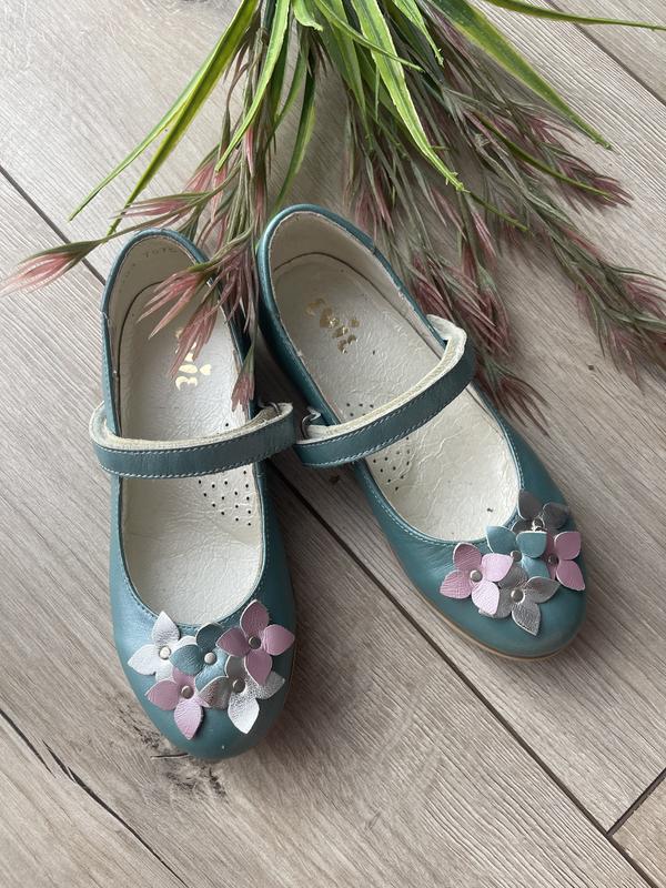Шкіряні туфлі бірюза 31р, 35р, 36р