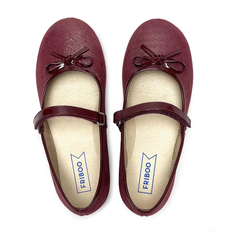 Туфельки для девочки Friboo (Германия) - верх: натуральный текстиль - мягкая анатомическая стелька - подошва резина - цвет бордовый - особенности: на среднюю и широкую ножку - фиксация: липучка - страна производства Испания EUR 32, стелька 20.4 см