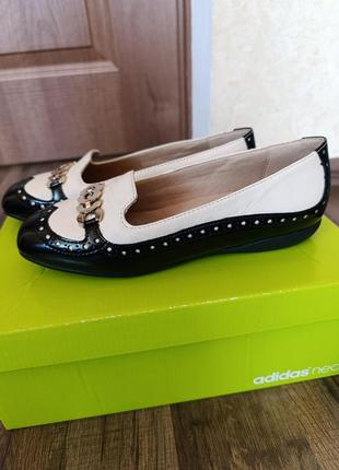 шикарные фирменные кожаные туфли, балетки 23 см, в новом состоянии