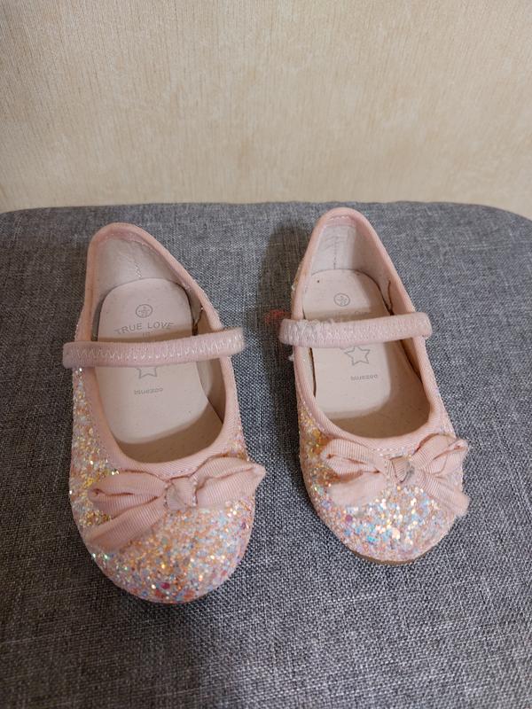 туфли детские 22 р 13.5см блестящие туфельки 13.5см bluezoo вымазано на бантик и немного распашные, на фото видно. небольшая потертость на резинке, 13.5см по стельке
