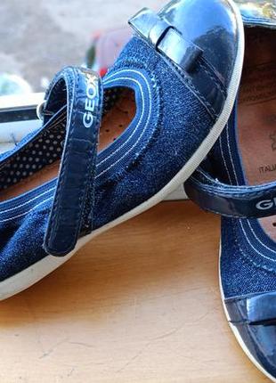 туфли, балетки geox 28р джинс,кожа стелька от края до края 17.5см состояние отличное. лакрованая кожа+джинсовая ткань. перешлю.