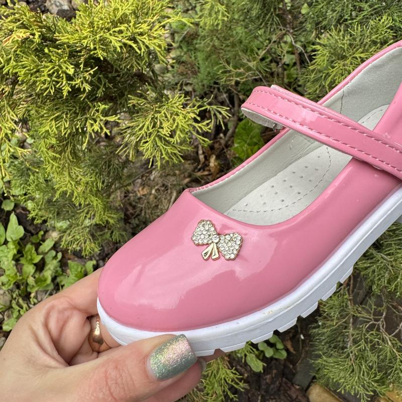 Туфельки для настоящей леди. Верх - лак экокожа. Украшены бантиком. Стелька- кожа, супинатор. Подошва – резина. Замеры стельки: 30 – 18,5 31 – 18,8 *бант может отличаться от фото
