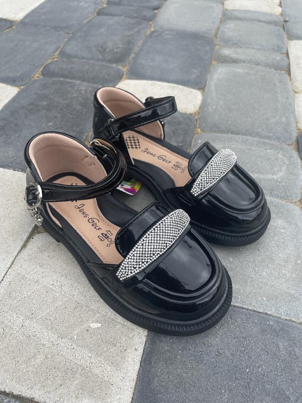 Нежная модель открытых туфель для девушек Верх лак Застежка на липучку Вставка из кожаной стельки с супинатором 28-17,5 см 29-18 см 30-19 см 31-19,3 см 32-20 см 33-20,5 см