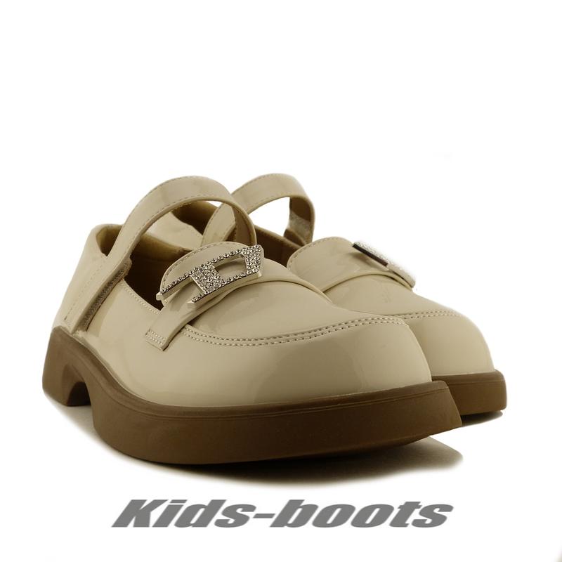 Туфли изготовленііе из искусственной лакированной кожи. Основной цвет верха- бежевіій. Материал подкладки - кожа коричневого цвета. Стелька - натуральная кожа, ортопедическая, коричневого цвета с супинатором. Имеют чрезвіічайно легкую и пружинистую подошву. Застежка - липучки, придзначенііе для детской ноги любой полноти и віісоти підйома стопіі. Розмеріі: обуви / стельки,см - 32/20cm; 33/20,7cm; 34/21,3cm; 35/22cm; 36/22,5cm; 37/23cm. --------------------------------------------------------------------------------------------------------------