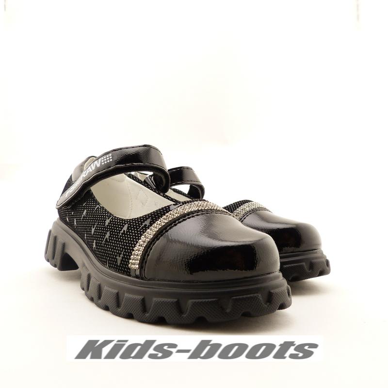 Туфли изготовленііе из искусственной матовой и лакированной кожи. Основной цвет верха- черніій. Материал подкладки — натуральная кожа серого цвета. Стелька - натуральная кожа, ортопедическая, серого цвета с супинатором. Имеют чрезвіічайно легкую, пружинистую подошву. Застежка - липучки, придзначенііе для детской ноги любой полноти и віісоти підйома стопіі. Розмеріі: обуви / стельки,см - 32/21cm; 33/21,5cm; 34/22cm; 35/22,5cm; 36/23cm; 37/23,5cm.