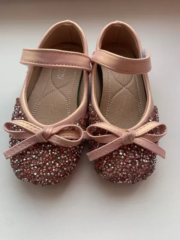Нарядные туфельки, в нормальном состоянии. Носочек не зауженный, что очень удобно для ножки. Замеры стельки на фото. Застегивается на липучку, работает хорошо.