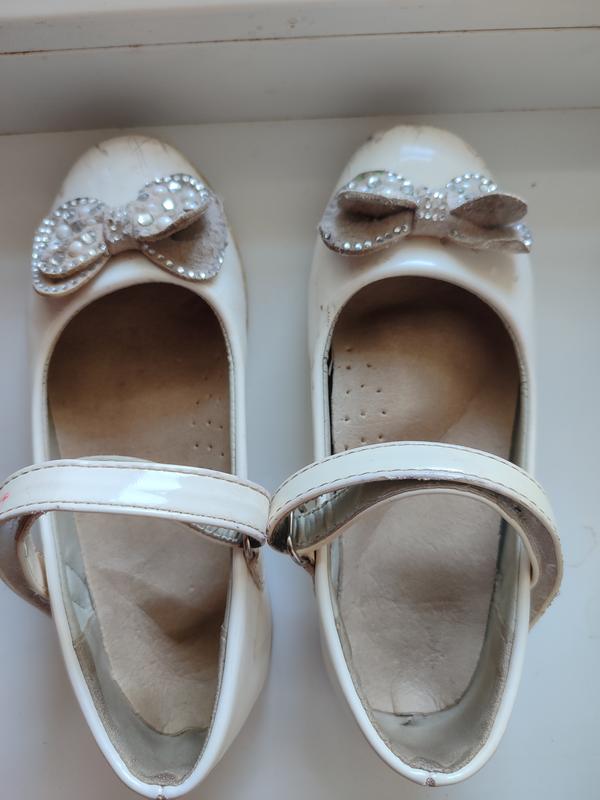 Продам белые туфли для девочки размер 29 стелька 18.5, состояние б.у, носочки сбиты.