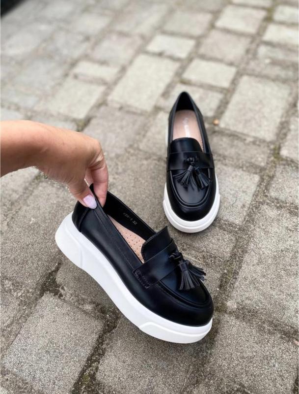 Стильные лоферы для модниц🖤Изготовлены из качественной экокожи.Стелька кожаная.Легкие.Высота подошвы 3 см