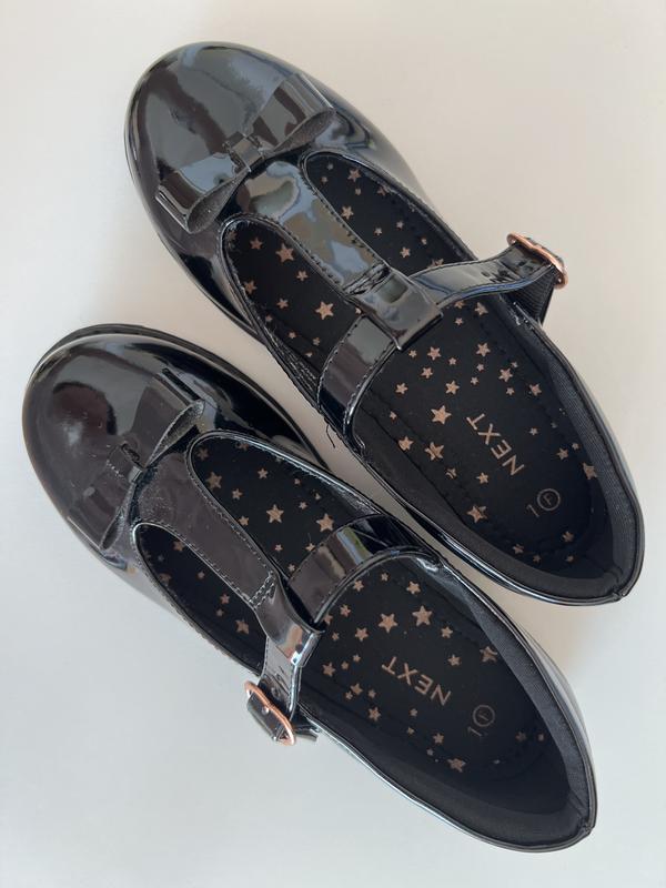Лаковые туфельки от Next Размер 33 Ширина обычная Застежка пряжка Стелька мягкая и сверху над пяткой есть мягкая вставка Длина стельки 21 см Имеет незначительные потертости изнутри - на фото видно