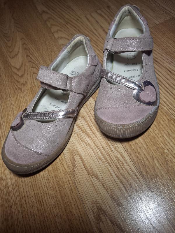 Туфли 26 размер, 17 стелька, полностью натуральная кожа, цвет пудровый с блестками, немного серые есть от ношения, дырки нет. Очень удобные. Лучше чем на фото. На странице моей есть подарки при покупке любых вещей.