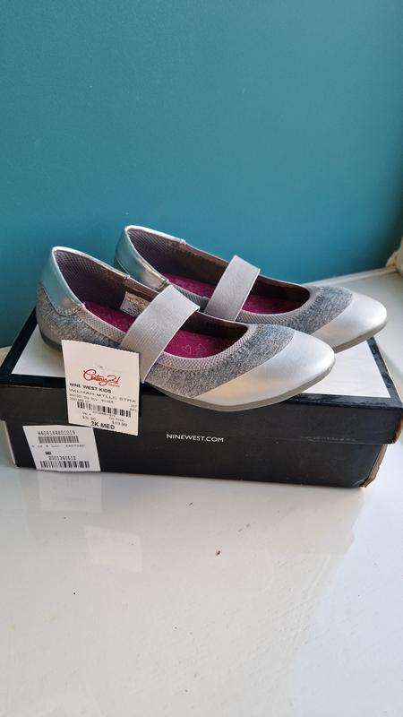 Туфли для девочки, Nine West, новые, Размер 32, длина стельки 21.2-21.3 см. Удобны в носке, не будут спадать, т.к. есть вспомогательная резиночка. Цвет серый+серебро