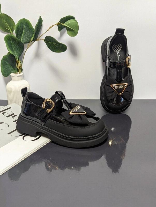 Стильні туфлі з бантом (пришитий). Верх-якісна лакована еко шкіра, шкіряна устілка, супінатор. Застібка-липучка. Заміри: 31 р-19,5 см 32 р-20,5 см 33 р- 21 см 34 р-21,7 см. 35 р-22,4 см 36 р-23 см
