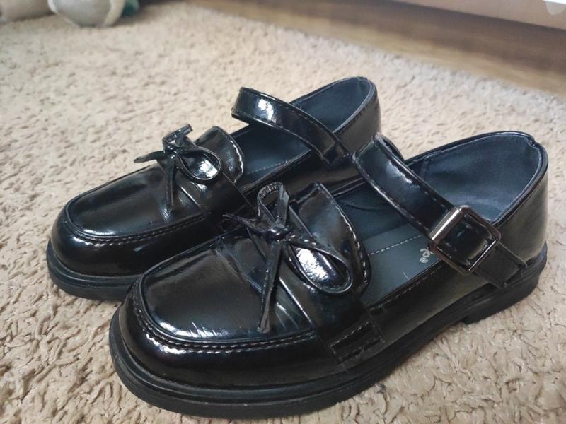 Лаковані туфлі для дівчинки. Зручні ,м'ягенькі. Носились дуже мало. Застібається на липучки. Шкіра м'яка, підошва гнучка. Довжина устілки 19,2 см. Стан ідеальний.Але присутній один ньюанс - див. остання фото можно зафарбувати кремом для взуття, не зафарбовувала, щоб було видно.
