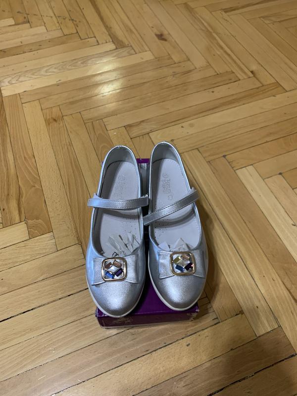 Срібні туфлі лакові б/у, фірма Tom.M, розмір 35 - устілка 22.7 см. Верх штучна шкіра-лак, в середині устілка з супінатором -натуральна шкіра. Туфлі вдягли 1 раз на свято.