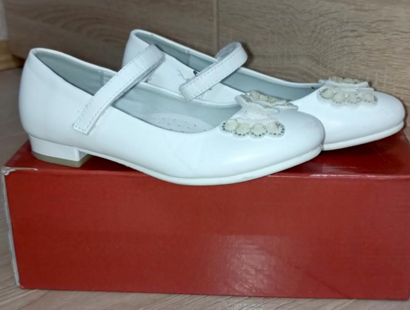 Продаю туфли белые праздничные для девочки, в красивом идеальном состоянии, каблук и подошва не стертые, покупали не новые, одевали один раз в праздник