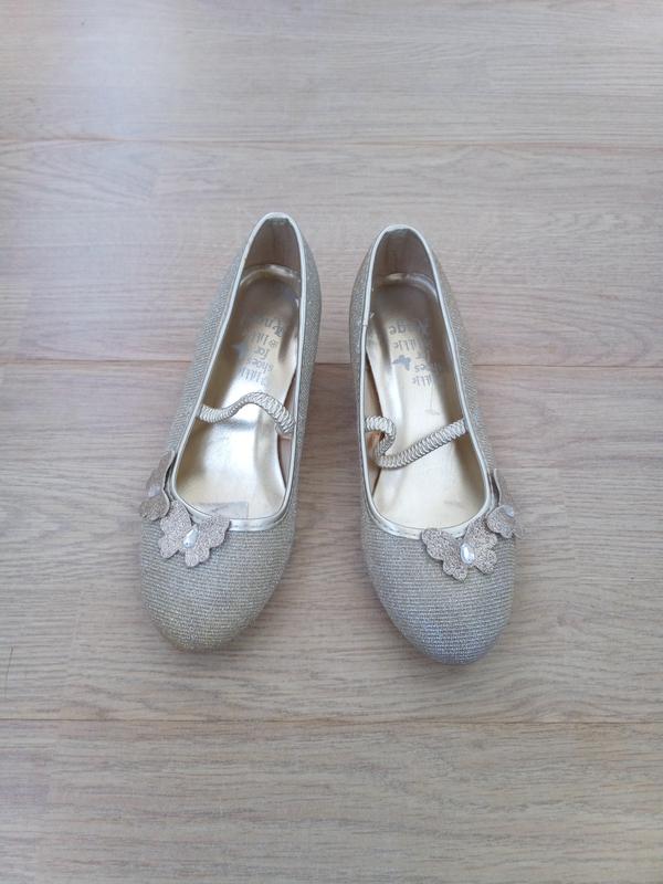 Туфли нарядные девочке, р 31, стелька 19см. Подходят для танцевальных выступлений. Золотисто-серебряные