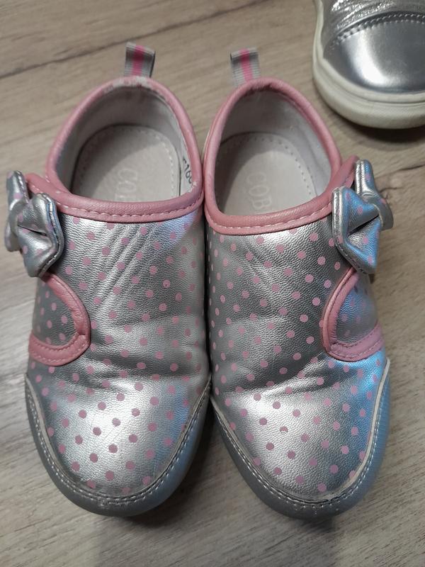 милые туфельки на липучке. внутри натуральная кожа. мягкие, удобные. есть небольшие следы ношения