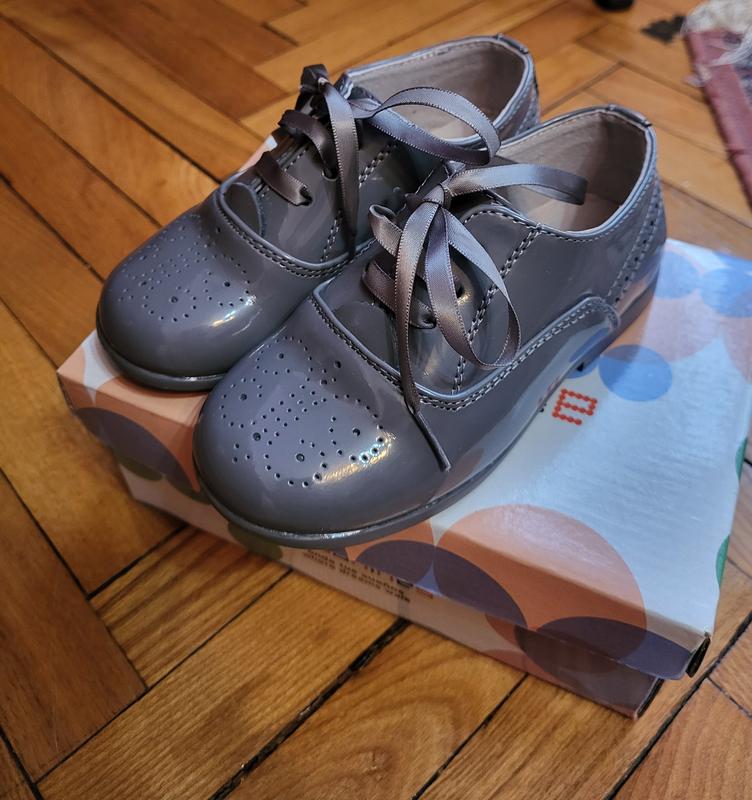 детские лаковые туфельки серого цвета. Размер 25