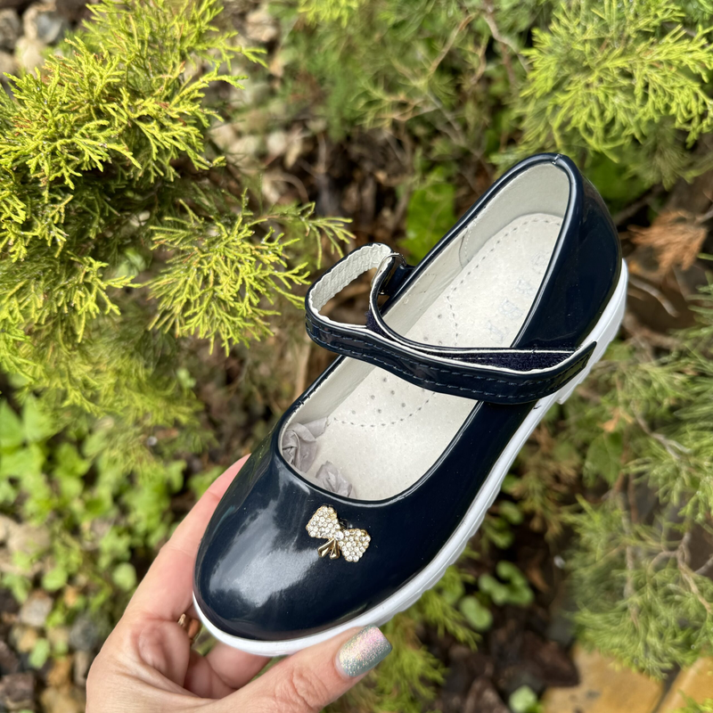 Туфельки для настоящей леди. Верх - лак экокожа. Украшены бантиком. Стелька- кожа, супинатор. Подошва – резина. Замеры стельки: 30 – 18,5см Цена: 350 грн *бант может отличаться от фото