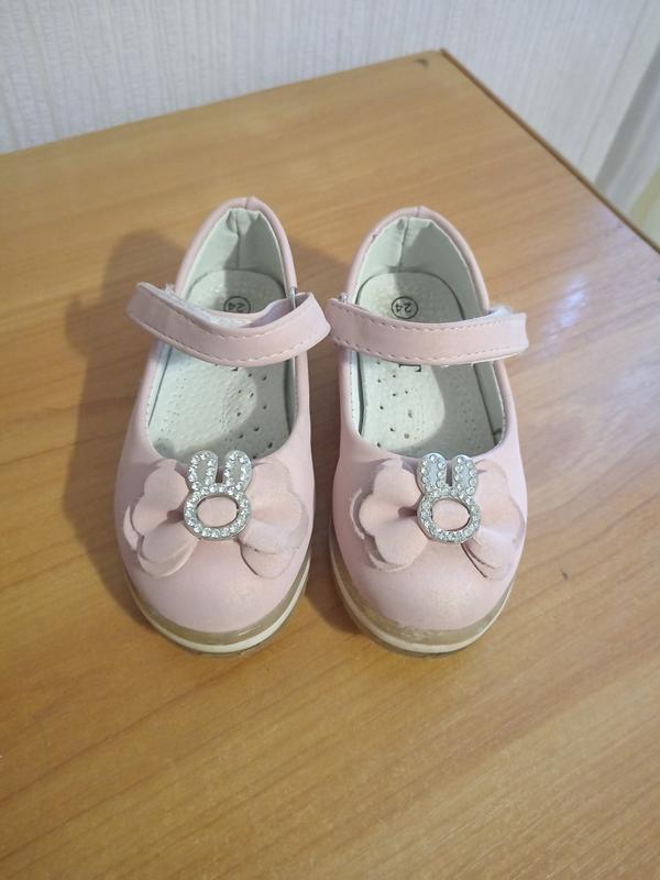 Туфельки для девочки. 24 размер пудра, длина стельки 14 см. Легкие. Подошва светится на обоих. Пересылаю по почте. Цена 130 за одну пару.