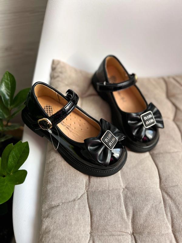 Стильные туфельки для красавиц 👑 Изготовлены из лакированной экокожи.Мягкие.Стелька кожаная с супинатором.Фиксуются липучкой.Подошва красиво гнется.Такую модельку получили в черном и черно-белом цвете.Бантик пришитый. Размеры: 28-17,6 см 29-18,5см 30-19 см / 2 пари 31-19,5 см /2 пари 32-20 см 33-20,7 см ❗️Замеры внутри туфельки, возможна погрешность 1-2 мм 🛍️Цена 890 грн