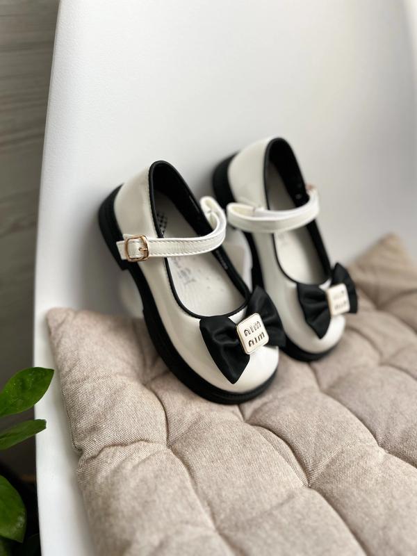 Стильные туфельки для красавиц 👑 Изготовлены из лакированной экокожи.Мягкие.Стелька кожаная с супинатором.Фиксуются липучкой.Подошва красиво гнется.Такую модельку получили в черном и черно-белом цвете.Бантик пришитый. Размеры: 30-19 см / 2 пари 31-19,5 см /2 пари 32-20 см 33-20,7 см ❗️Замеры внутри туфельки, возможна погрешность 1-2 мм 🛍️Цена 890 грн