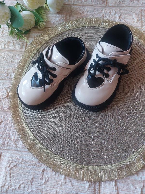 Отличные туфли для девочки. Верх - лакированная эко-кожа. На липучке и шнуровке. Фиксированная пяточка. Очень легкие. Надевались несколько раз. Цвет - бежевый. Размер 29, по стельке 17,5 см. Цена 600 грн