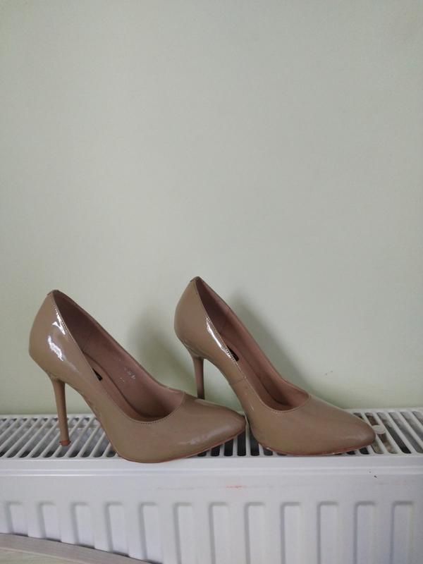 туфли на тонкой шпильке, лакированные, бежевые, цвет чуточку отличается, светлее, высота шпильки 10 см