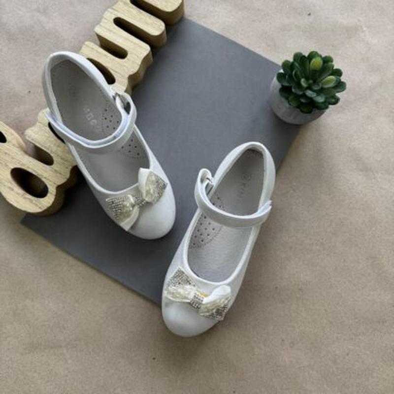 Отличные и стильные туфельки для девочки. Верх - экокожа. Украшены камнями и бантиком. Стелька- кожа, супинатор. Подошва – резина. Размеры: 32 – 19,5 33 – 20,1 34 – 20,8 35 – 21,6 36 – 22,2 37 – 22,5