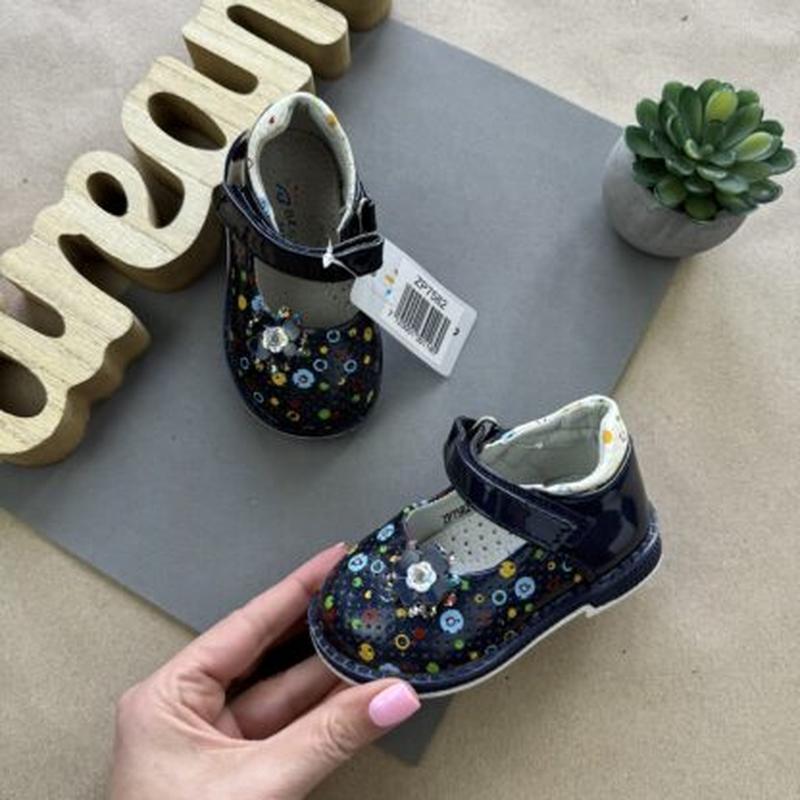 Отличные туфельки. Удобные, практичные, хорошее качество. Застежка- липучка. Стелька- кожа, супинатор. Размеры: 21 – 12,3 22 – 13,1 23 – 13,8 24 – 14,4 25 – 15,0 26 – 15,7