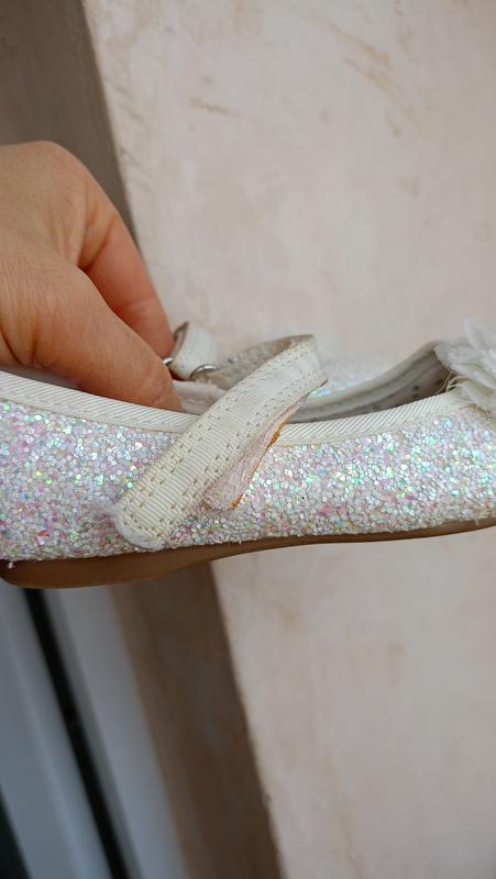 туфли яркие глиттер белые, для девочки 7 р.24 являются следы клея производственного состояния так хорошо. цветочек тканый потрепанный стелька-14.5см перешлю.