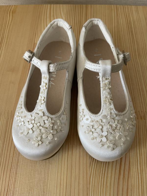 Атласные туфельки меры джейн, украшенные цветочками, новые, цвет сливочный, размер 20, длина стельки-13 см