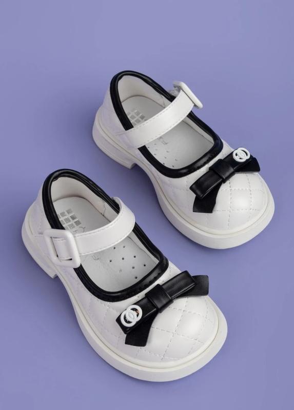 Туфли для девочек Китай Материал верха - экокожа Стелька - кожа, супинатор есть Высота каблука - 2 см Подошва - ПВХ Размеры 22-25