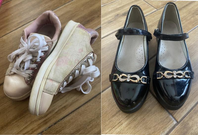 Туфельки лаковані в чудовому стані, дефект на фото, липучка працює. Довжина устілки 21-21,5 см Довжина устілки кеди - 21 см Ціна за 2 шт