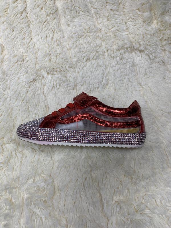 ошатні туфельки спорт - елегант для дівчинки, розмір 27; оформлені стразиками, зручна колодка, красиво сидять на ніжці, дуже прикрасять повсякденний і щоденний LOOK. Легенькі, незвичайні, при штучному освітленні прямо попелюшкині туфлі