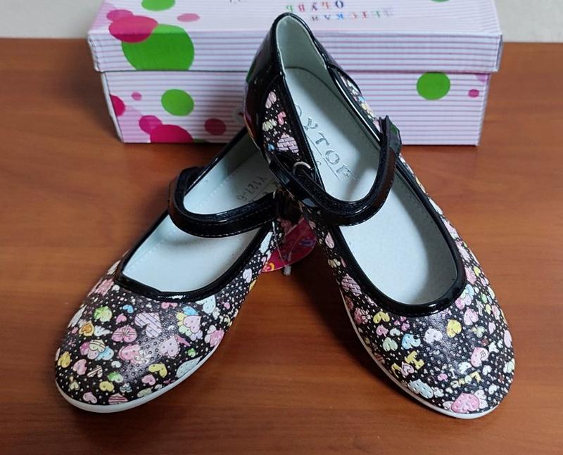 красивые туфельки для юной модницы, легкие, элегантное сочетание цветочного принта и лаковых вставок, золотистая окантовка на каблуке, на ножке фиксируется лаковой перепонкой на липучке, анатомическая стелька с супинатором и перфорацией - натуральная кожа, качественное исполнение, туфельки изготовлены из кожзама, размеры 26-31