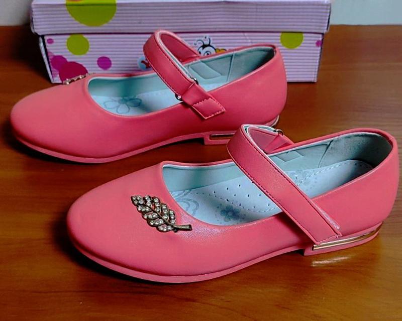 красивые туфельки для девочки с элегантным листиком, украшенный стразами, каблук украшен металлической окантовкой, на ножке фиксируется перепонкой на липучке, анатомическая стелька с супинатором и перфорацией - натуральная кожа, качественное исполнение, туфли изготовлены из кожзама, размеры 31-36
