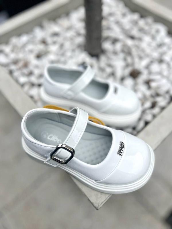 К.1710 👧Класичні туфлі Clibee, білі, верх лакована еко-шкіра, устілка анатомічна, регулюються липучкою. 26р устілка 16,3см 26р устілка 16,3см 27р устілка 17см 28р устілка 17,5см 29р устілка 18,3см 29р устілка 18,3см 30р устілка 19см