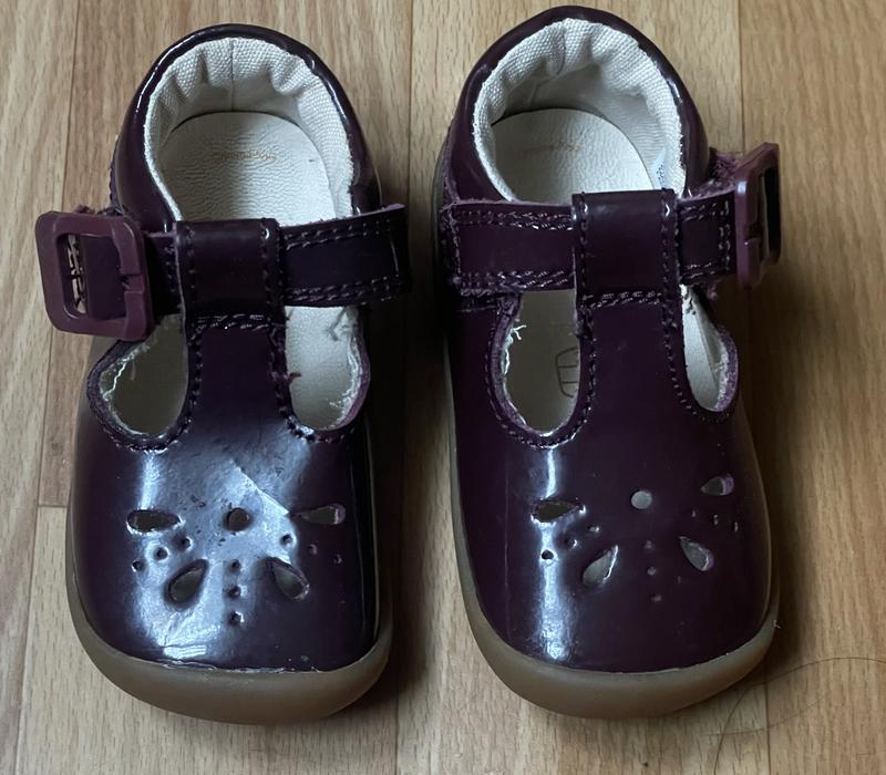 Дитячі туфельки з натуральної лакованої шкіри Clarks в гарному стані. Розмір 18., довжина 10,5 см Колір бордовий
