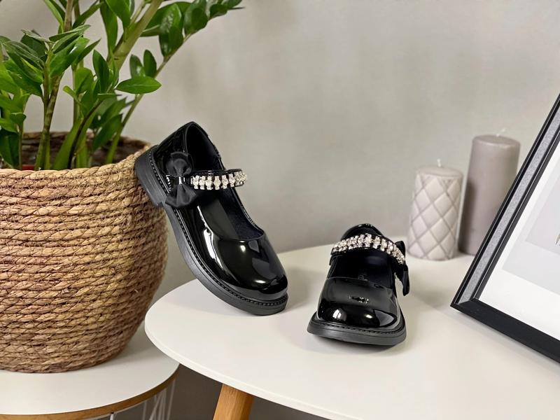 Неймовірно стильні туфельки Відмінна якість Верх еко лак Устілка перфорована з супінатором Гнучкі та м"які Фіксація липучкою Всі прикраси надійно пришиті Ціна 1000 31р - 19,5 см 32р - 20,3 см 34р - 21,5 см