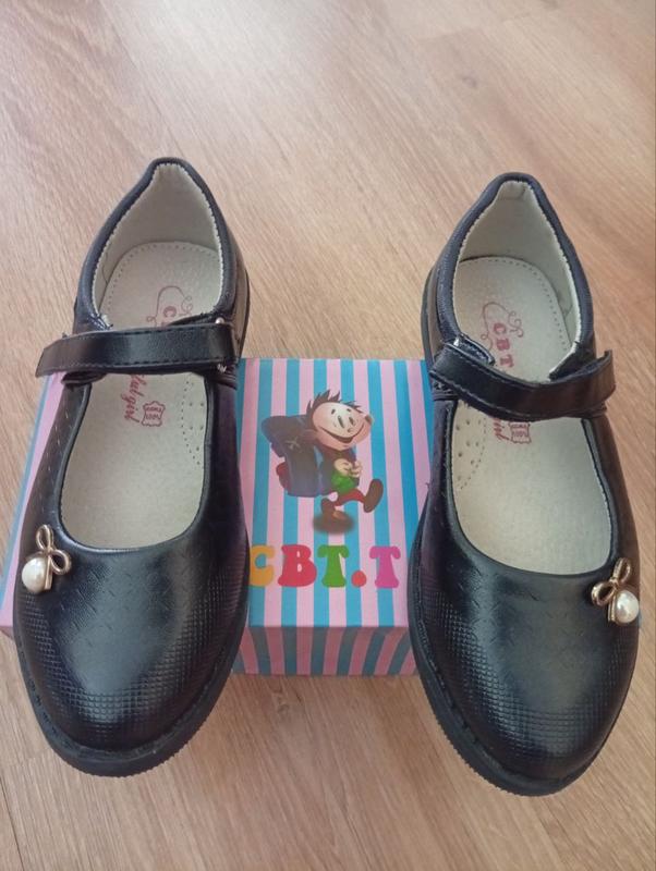 Черные кожаные туфли на девочку Размер 30 Стелька кожа с супинатором Длина по стельке -19-19.2 см Фирма производитель СВТ.Т Состояние новой обуви, без каких-либо дефектов. Наденьлись на 1 сентября и больше не носились.