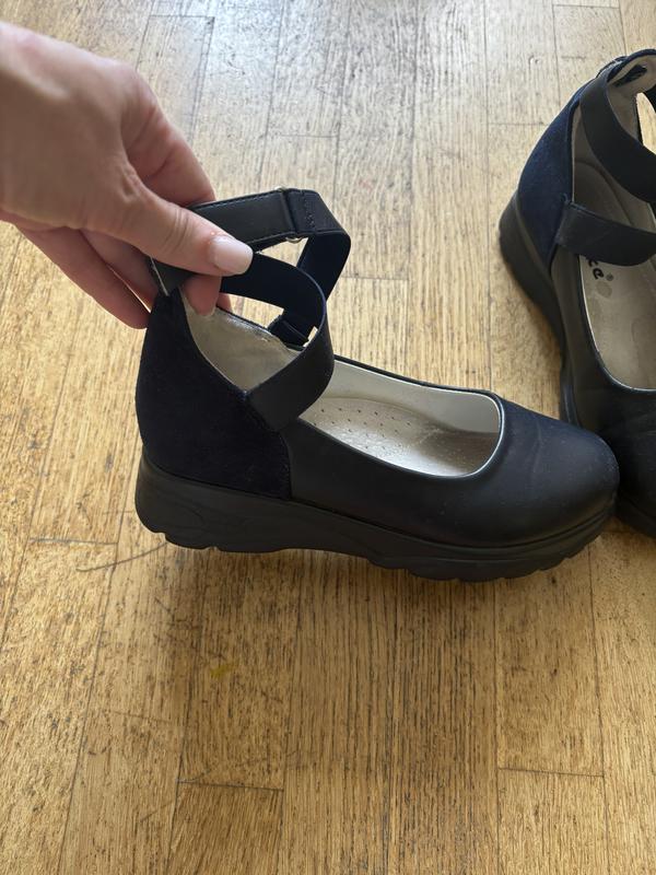 Туфлі для дівчинки, ідеально в школу, темно-синій майже чорний колір На високій танкетці Легенькі та зручні Підійдуть на змінне взуття Устілка - 21 см
