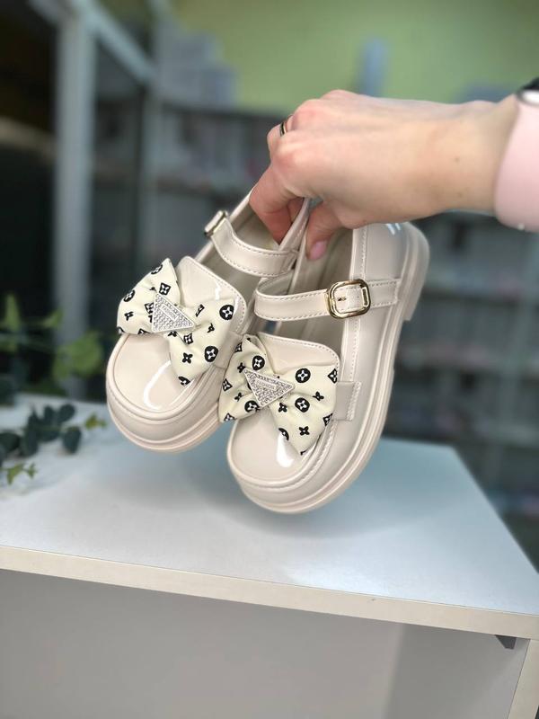 Праздничные туфельки для принцесс💕 Верх - лакированная экокожа. Легкие, на ножке смотрятся стильно❤️🔥 Пяточка держит ножку. Фиксация липучкой. Текстильный бантик пришитый 🎀 Размеры: 31р - 19,5 см 32р - 20,5 см 33р - 21 см 34р - 21,5 см 35р - 22,5 см 36р - 23 см