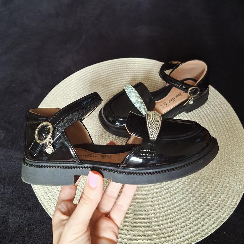 Туфли черные с камушками-все на месте, застегивается на прочную липучку ✔️ 32р ✔️ устілка 20см ✔️ Идеал, по внутренней стороне имеет незначительные трения, нецарапины