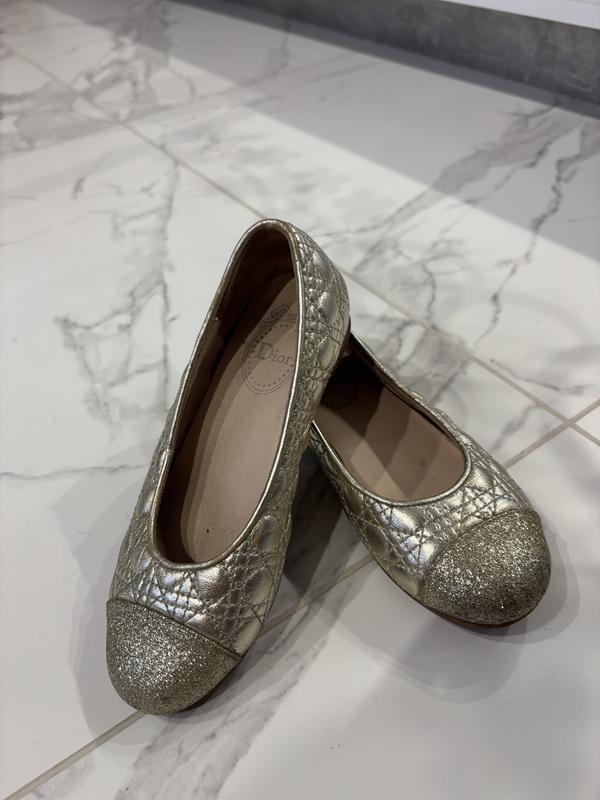 Золотисті туфлі Dior - Розмір: 29 - Стан: ідеальний - Матеріал: глянцева шкіра - Підошва: щільна, стійка - Декор: тиснення з блиском, блискучий носик Ці балетки — справжній акцент в образі. Пасуватимуть до святкових суконь і ніжних повсякденних луків. Виглядають дуже дорого й елегантно. Якщо потрібно скину додаткові фото або заміри🤩