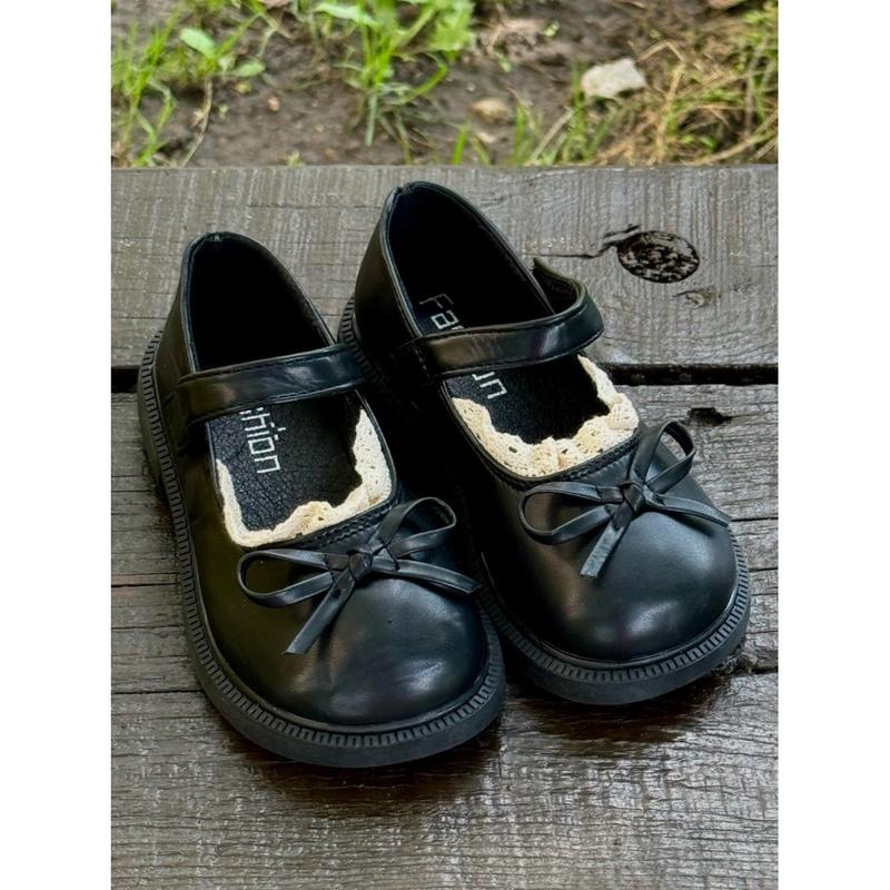 26 - устілка 16,2 см 27 - устілка 16,9 см 34 - устілка 21,2 см 35 - устілка 21,8 см 36 - устілка 22,3 см Новинка! Чорні туфельки для дівчинки — стиль і комфорт щодня Вишукані туфлі з еко-шкіри з акуратним бантиком і мереживною обробкою — чудове поєднання елегантності та зручності. Застібаються на зручну липучку, що дозволяє дитині легко взуватися самостійно. М’які, легкі та комфортні — ідеальні як для школи, так і для урочистих подій. Колір: класичний чорний — пасує до будь-якого вбрання.