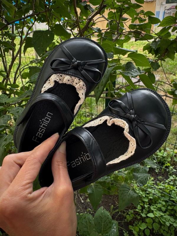 ЦІНА РОЗМІР 26 - устілка 16,2 см (3 шт) 27 - устілка 16,9 см (3 шт) 28 - устілка 17,5 см (2 шт) 29 - устілка 18,2 см (3 шт) 30 - устілка 18,8 см (3 шт) 31 - устілка 19,3 см (3 шт) 32 - устілка 19,8 см (3 шт) 33 - устілка 20,3 см (3 шт) 34 - устілка 21,2 см (3 шт) 35 - устілка 21,8 см (3 шт) 36 - устілка 22,3 см (3 шт) Чорні туфельки для дівчинки — стиль і комфорт щодня ✨ Вишукані туфлі з еко-шкіри з акуратним бантиком і мереживною обробкою — чудове поєднання елегантності та зручності. 🔒 Застібаються на зручну липучку, що дозволяє дитині легко взуватися самостійно. 👣 М’які, легкі та комфортні — ідеальні як для школи, так і для урочистих подій. 🎨 Колір: класичний чорний — пасує до будь-якого вбрання.