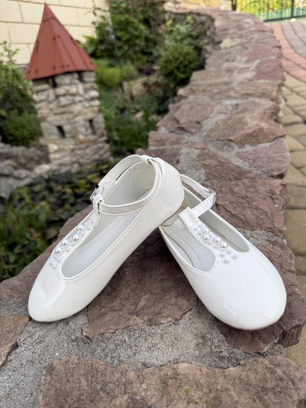 Білі лакові туфлі,стан ідеальний,всі перлини на місці