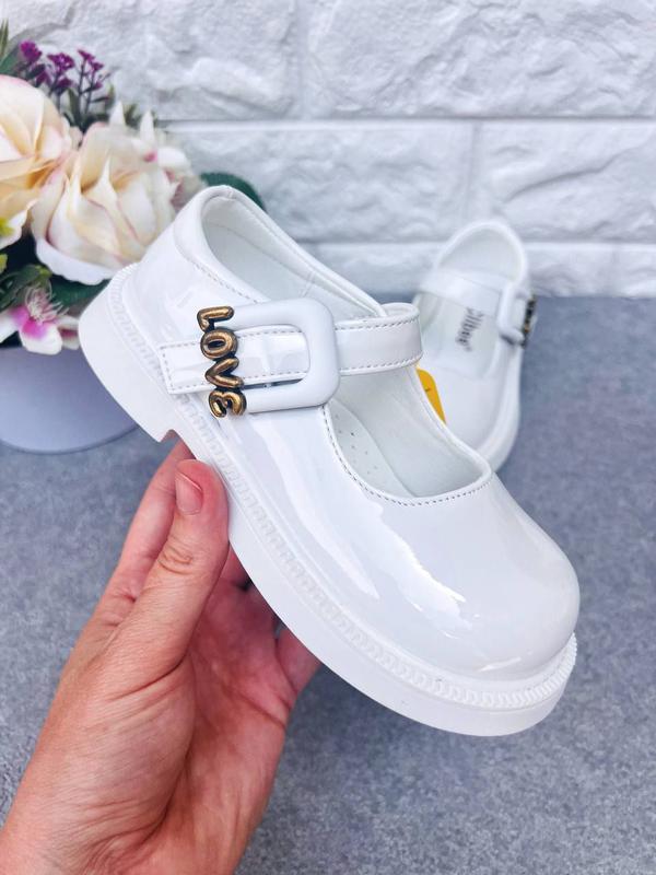 К.1808 👧Отличная новинка от Clibee, цвет белый, верх лакированная эко-кожа, стелька кожаная с супинатором, регулируются липучкой, украшены красивым украшением "Love". 27р стелька 16,5см 29р стелька 17,8см К.1809 33р стелька 20,8см 37р стелька 22,7см